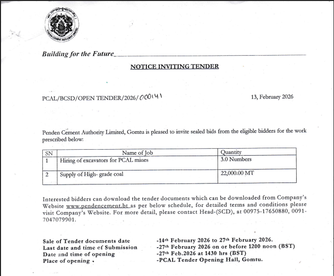 Penden Cement Authority Limited (PCAL), Gomtu, Bhutan invites quotations from reputed manufacturers or potential suppliers of Bhutanese or Indian origin having a valid trade license for the supply of PP Bags (Polypropylene Bags).